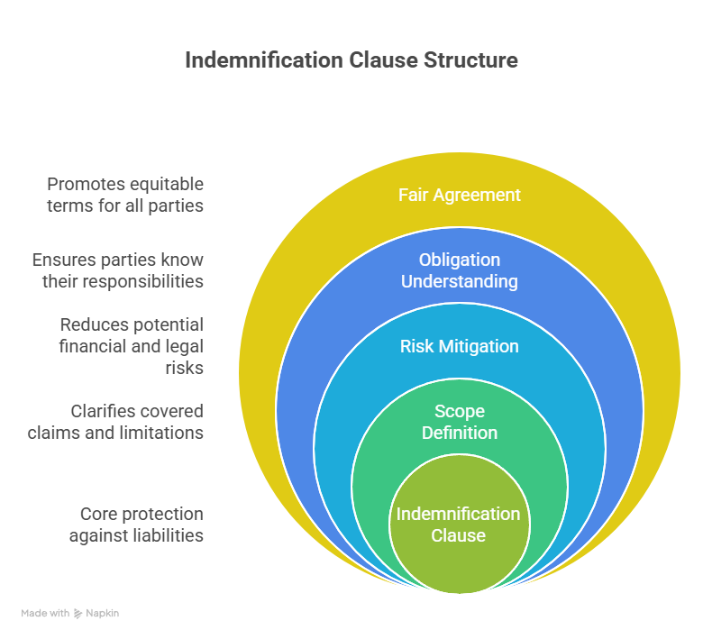 At its core, an indemnification clause is a promise: one party agrees to cover the losses, costs, or damages the other might face because of certain events.